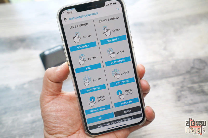 컨트롤도 개별적으로 다 커스텀이 가능합니다. 한번 터치했을때, 두번 터치했을때, 길게 눌렀을때, 좌, 우 버튼 배치 등 섬세하게 컨트롤이 가능하고
