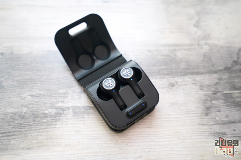 오픈을 하면 충전케이스에 들어 있는 JLAB EPIC 에어 ANC 이어폰을 만날 수 있습니다. 그리고 아래쪽에는