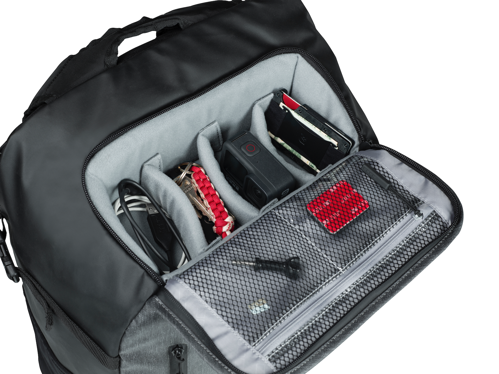 고프로 위켄더 백팩은 32L의 넉넉한 보관 공간을 가지고 있고 일상, 여행 등에서 활용할 수 있는 다목적 백팩입니다. 카메라, 전자 기기, 신발 등을 넣을 수 있도록 처리된 별도 공간이 있고 최대 15인치 노트북을 넣을 수 있는 측면 보호 파우치를 제공합니다. 그리고 귀중품을 넣을 수 있는 주머니, 세탁물을 분리할 수 있는 내부 접이식 공간도 있습니다.