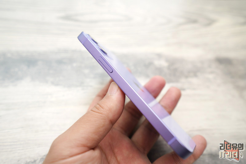 아이폰12 미니 퍼플 사이드 프레임은 항공 우주등급의 알루미늄 소재로 되어 있고 무광의 퍼플 컬러를 적용했습니다. 유광과 무광의 세련된 조합을 느낄 수 있습니다.