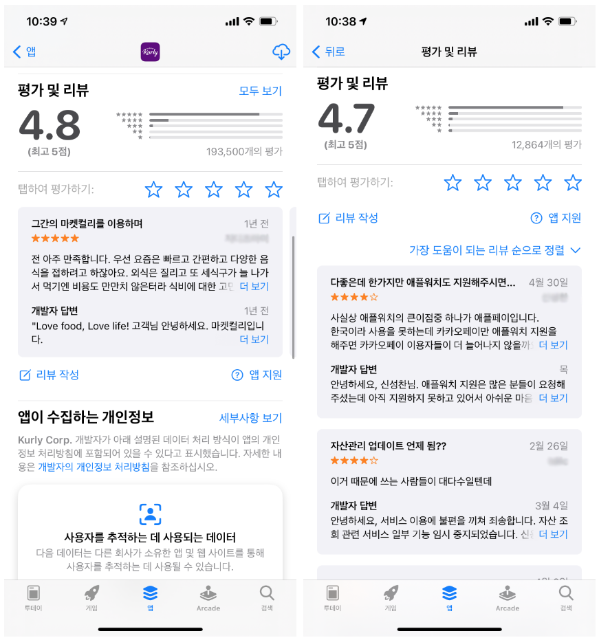 앱스토어에는 평가와 리뷰가 있어 사용자들이 어떤 앱을 다운로드할 지 결정하는데 도움을 주고 있습니다. 이건 배달앱, 쇼핑에서도 많이 사용되는 방식이죠. 하지만 이를 부정한 방법으로 조작하는 경우도 있어 이를 관리하고 있습니다. 머신 러닝, AI, 전문가 팀의 리뷰를 결합한 정교한 시스템을 기반으로 평가와 리뷰를 관리해 정확도를 보장하고 신뢰도를 유지할 수 있도록 돕고 있습니다. 2020년부터 애플은 아이폰, 아이패드, 맥 앱스토어에 있는 10억 개가 넘는 평가와 1억 개가 넘는 리뷰를 처리했고 적절성 기준에 맞지 않는 2억 5,000만 건의 평가와 리뷰를 삭제했습니다.
