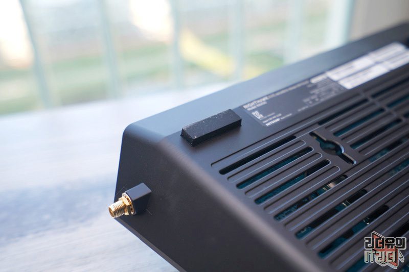 넷기어 나이트호크 RAX50 바닥면 입니다. 벽에 걸 수 있는 홈도 있습니다.