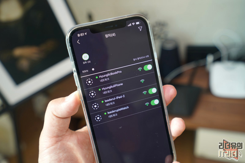 장치 메뉴에는 어떤 기기들이 연결되어 있는지 알 수 있습니다. 여기서 인터넷을 막을 수도 있습니다.
