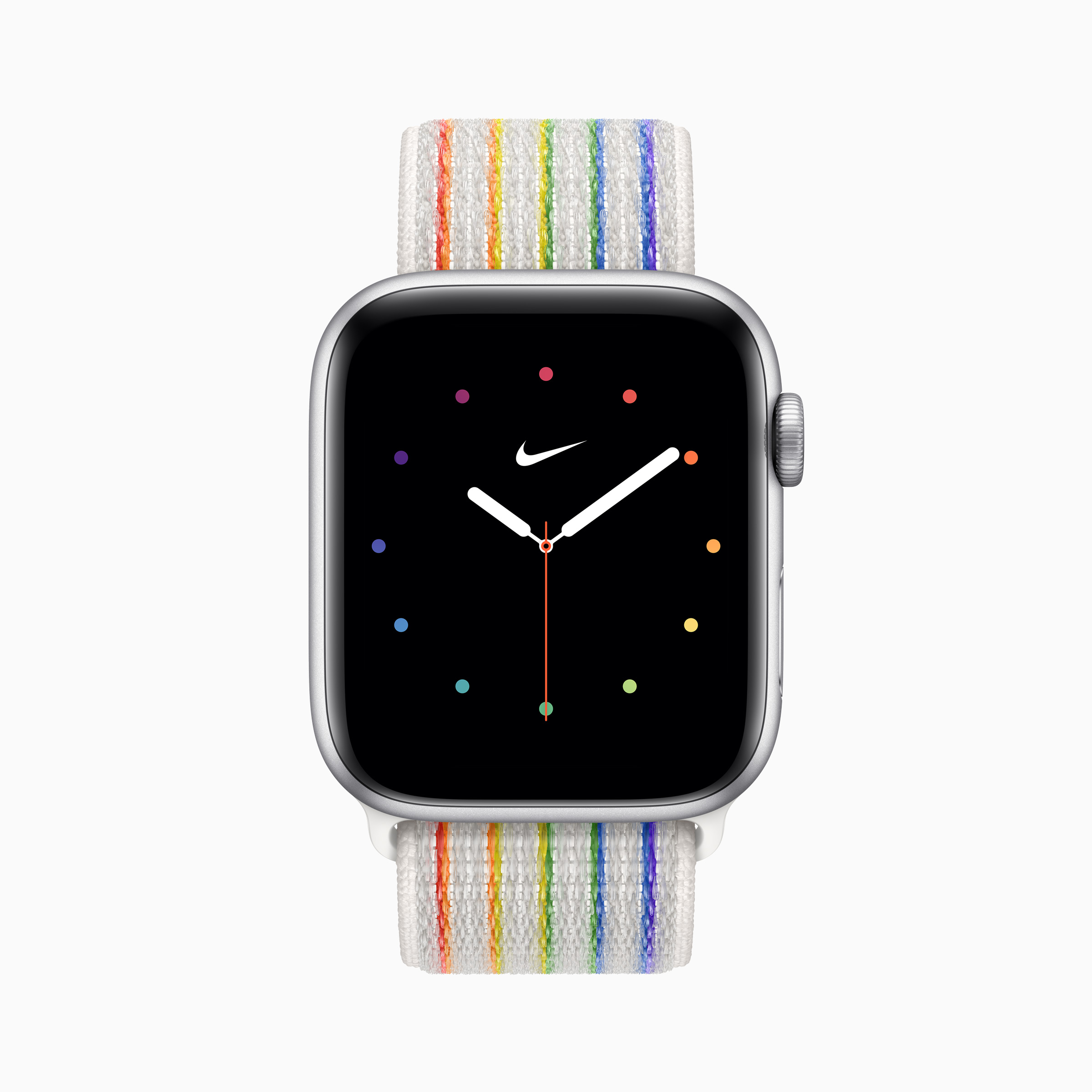 애플워치 프라이드 에디션 나이키 스포츠 루프는 기존의 여섯가지 무지개색을 활용했고 밤 시간에 야외에서 달리기, 사이클링, 걷기 등과 같은 운동을 즐기고자 하는 이들을 위해 광반사 실을 사용했습니다.