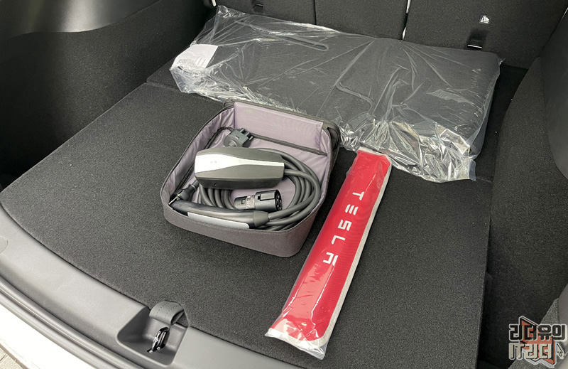 보통 다른 자동차 회사들은 이것저것 선물도 많고 챙겨주는게 많지만 테슬라는 일절 없습니다. 발매트는 분리되어 있으니 깔아주면 되고 충전 도구와 삼각대만 제공이 됩니다.