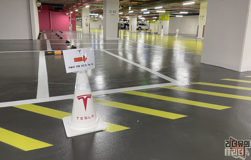 이대서울병원으로 들어가서 엘리베이터를 타고 지하5층으로 갑니다. 그럼 테슬라 딜리버리 센터라고 표시가 있습니다. 이대서울병원 지하 주차장을 딜리버리센터로 이용하고 있는 것입니다.