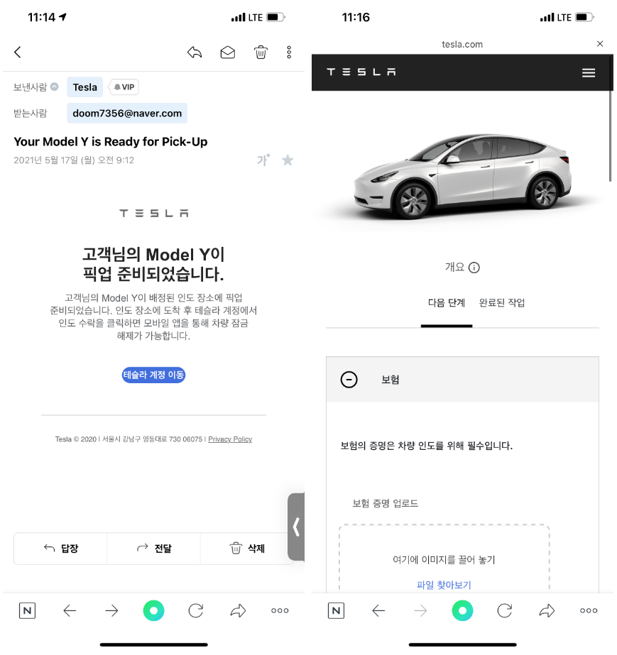 먼저 메일로 온 테슬라 모델 Y 픽업 준비에서 테슬라 계정으로 이동해야 합니다. 미리 테슬라 계정 아이디 비밀번호를 기억하고 오셔야 헤메지 않습니다.
