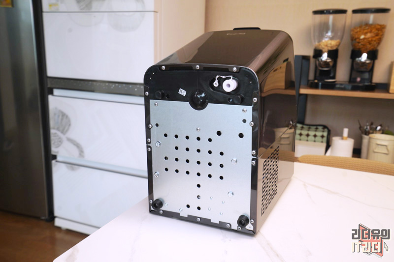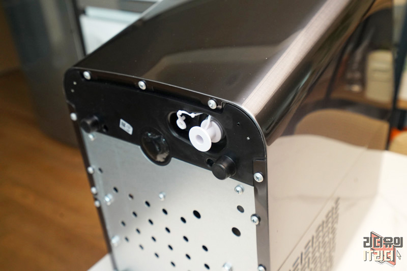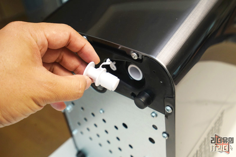 그리고 하단부를 보면 전원선이 나오는 부분 옆에 물을 공급할 수 있는 직결 호수관이 있습니다. 정수기로 직수 연결이 가능하니  더 편하게 물을 공급할 수 있습니다.