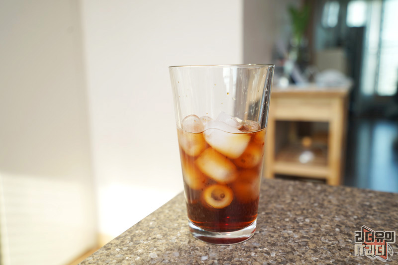 아이스티에 얼음을 넣은 모습입니다.