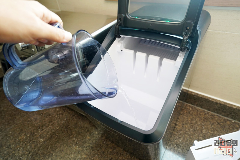 얼음을 만들려면 물을 넣어야 겠죠. 정수기에서 물을 담아서 넣어주면 됩니다.