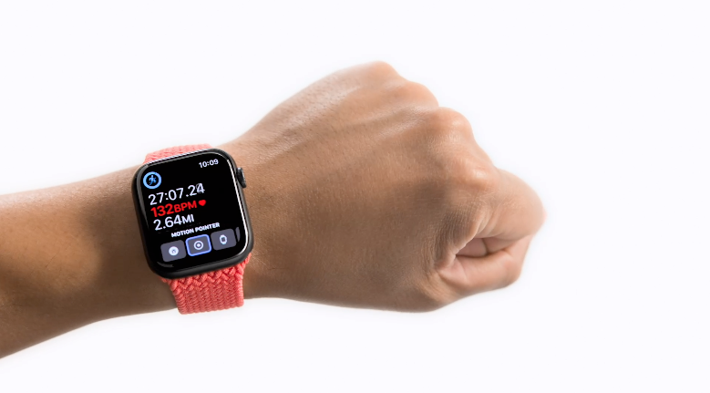 운동능력이 제한적인 사용자를 위해 애플은 손을 대지 않고도 애플워치를 사용할 수 있는 새로운 손쉬운 사용 기능을 선보입니다. watchOS용 AssistiveTouch를 통해 화면이나 제어 기능을 터치하지 않고도 애플워치 기능을 사용할 수 있는 변화를 가져옵니다. 자이로스코프, 가속도계 등 자체 내장된 모션 센서와 광학 심박 센서, 온디바이스 머신 러닝 기능을 기반으로 근육 움직임과 힘줄 운동의 미세한 차이까지 구분해 내게 됩니다.