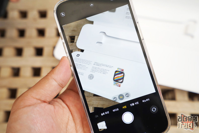 카메라를 켜고 애플워치 프라이드 에디션 브레이드 솔로 루프 패키지의 앱클립 로고에 가져다 대면