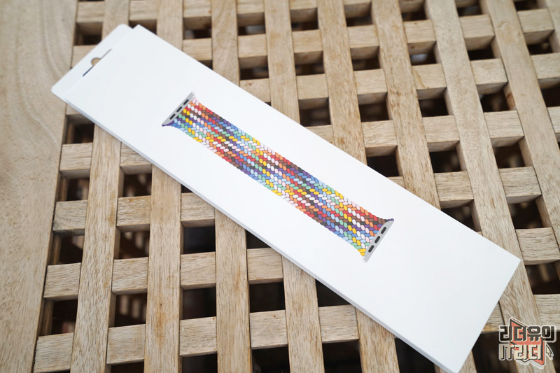 2021 애플워치 프라이드 에디션 브레이드 솔로 루프 밴드 패키지입니다. 이미지로 어떤 밴드인지 생생하게 보여주고 있습니다.
