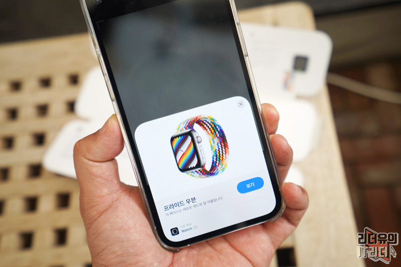 뒤쪽에 보면 스페셜 에디션 답게 애플워치 표시도 무지개로 표시하고 있는 것을 알 수 있습니다.