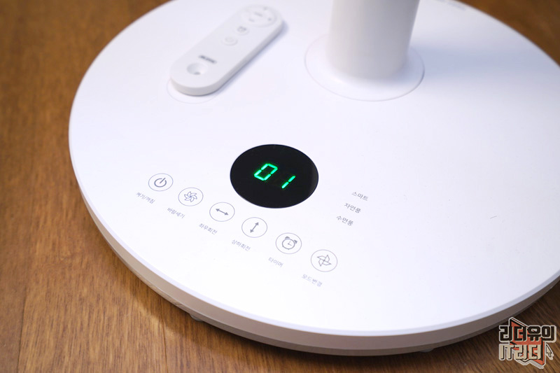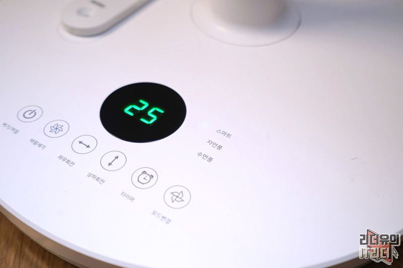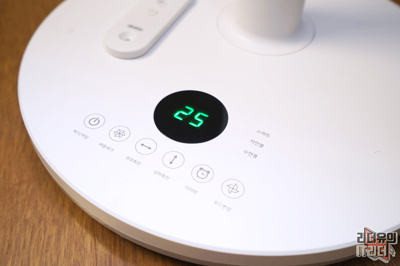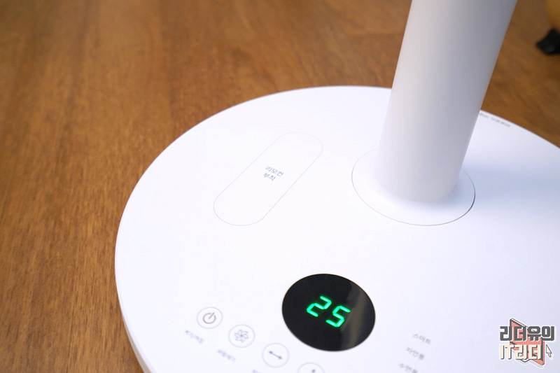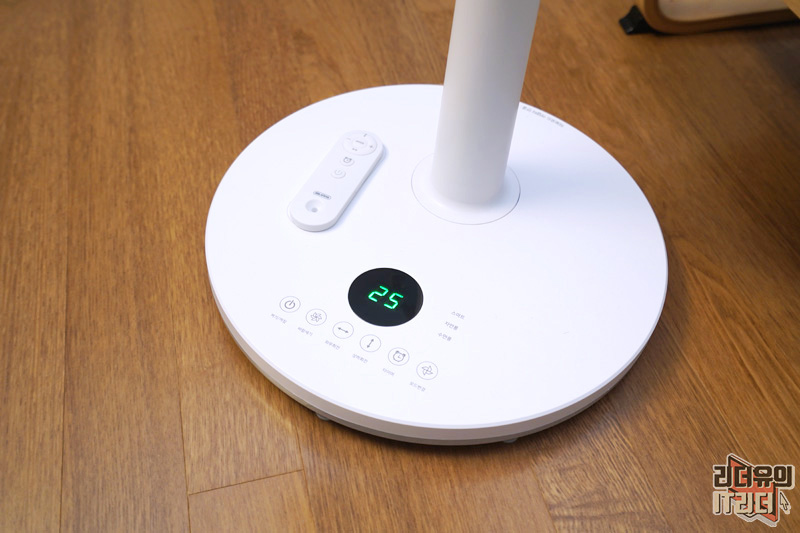 스탠드 부분을 보면 각종 버튼과 LCD가 있습니다. LCD에 25라고 나와 있는데요. 이건 실내 온도를 의미합니다. 이렇게 실내 온도까지 측정해서 보여주니 얼마나 더운지 알 수 있어서 좋습니다.