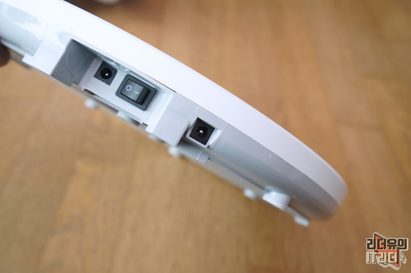 옆에는 전원스위치 하나와 어댑터를 연결하는 단자가 2개나 있습니다. 딜루비스 윈드프리의 특징이라 할 수 있는 부분인데요. 아래에서 조금 더 자세하게 알려 드리겠습니다.
