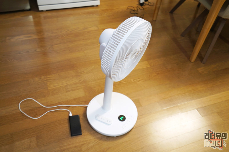 딜루비스 윈드프리 무선선풍기는 BLDC 모터를 사용했기 때문에 국내 판매중인 스탠드형 무선선풍기 중 유일하게 보조배터리를 사용해 배터리 충전이 가능합니다. 무선선풍기들이 배터리를 이용하지만 충전은 보조배터리로 안되었는데 딜루비스 윈드프리는 가능한 것입니다.