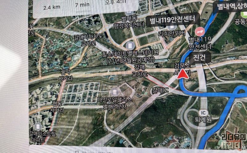 그래서 초행길일 경우 테슬라 모델Y 내비게이션만으로 길을 찾아가기란 쉽지 않을 수 있습니다. 물론 어느 정도 가늠은 가능하지만 정확한 차선 정보나 갈림길에 대한 중요한 표시가 없어서 길을 잘못 드는 경우가 있습니다.