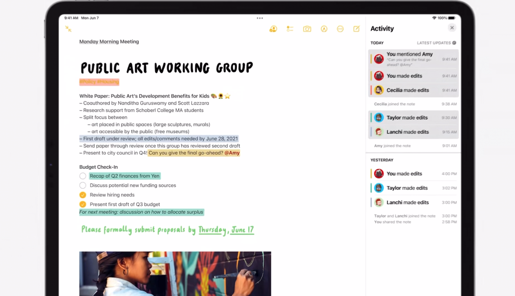 아이패드는 애플펜슬로 메모를 할 일들이 많은데요. 연락처에 있는 사람과 메모를 공유할 수 있고 태그를 추가해 목록을 구분할 수 있게 개선되었습니다.