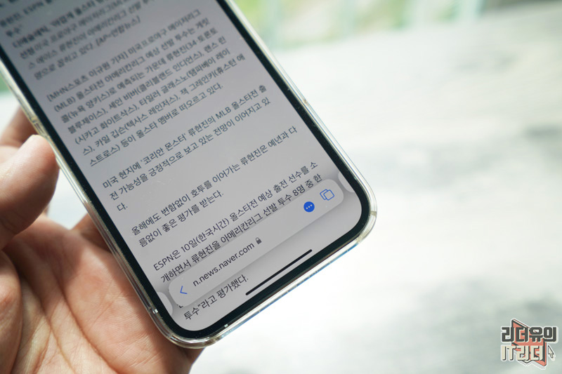 파란색으로 체크가 되고 읽기 모드 화면으로 바로 들어갑니다. 기존에도 그랬지만 다양한 단축 기능을 통해 빠른 접근성을 보여주고 있습니다.