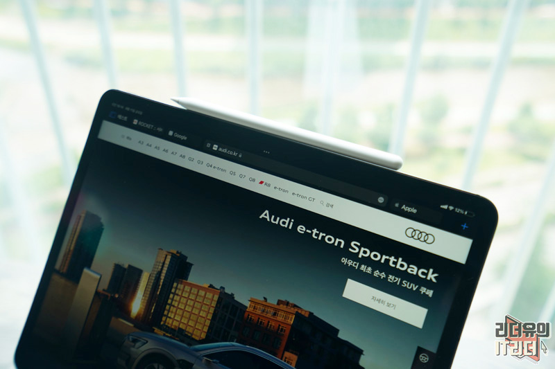 아이패드 사파리의 전체적인 변화 포인트는 맥 사파리와 똑같다고 보시면 됩니다. 사이트의 배경컬러에 따라 탭바의 컬러가 변경되는 디자인 변화가 아이패드 사파라에도 적용되어 있습니다.