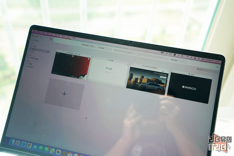WWDC21을 통해 공개된 맥 사파리는 디자인의 변화를 확인해 볼 수 있습니다. 기존보다 더 심플해진 디자인을 보여주고 있는데요. 독특한 점은 상단 탭바가 사이트의 색상에 맞게 변경이 된다는 것입니다.