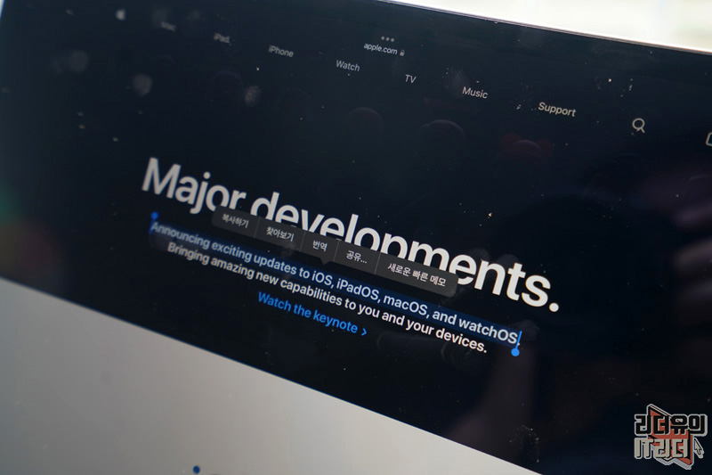 미국 애플 홈페이지 같은 경우는 블랙 배경으로 되어 있는데요. 사파리의 탭 바도 블랙으로 되어 있는 걸 확인해 볼 수 있습니다. 일체감있는 화면으로 더욱 꽉찬 화면을 보여주는 것을 알 수 있습니다.