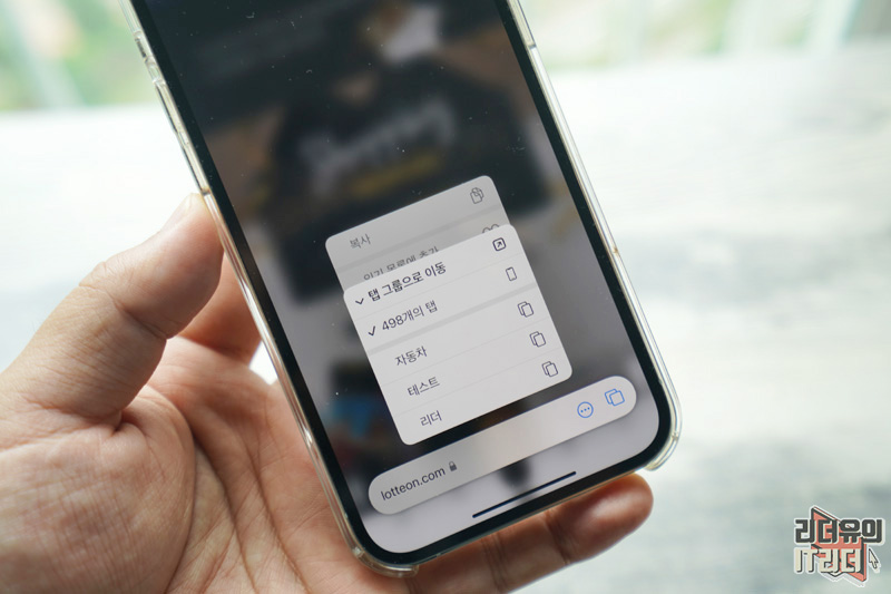 아이폰 사파리에서도 똑같이 탭 그룹 이동이 가능합니다. 어떤 디바이스를 사용하든 똑같은 창과 같은 메뉴 구조를 가지고 있기 때문에 연속성있는 작업을 할 수 있습니다.