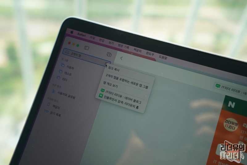 열립 탭을 선택하면 새로운 탭 그룹 지정을 할 수 있습니다. 맥 사파리와 살짝 다르면서 같은 구조라는 것을 알 수 있습니다