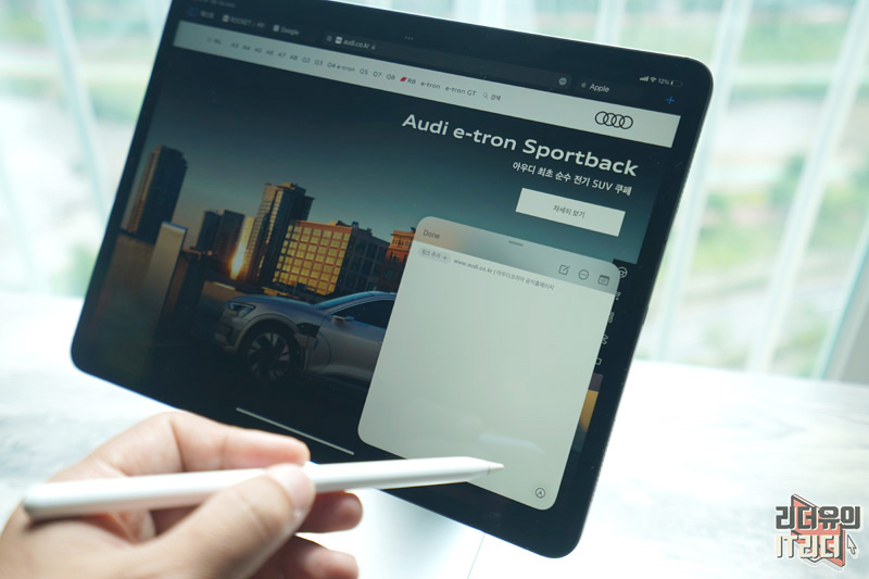 아이패드 iPadOS 15 빠른 메모 기능은 오른쪽 끝에서 애플펜슬로 끌어 올리면 빠른 메모창이 나옵니다. 애플펜슬을 이용한 빠른 메모를 지원하기 때문에 아이패드만의 손글씨 메모를 남길 수 있는 매력이 있습니다.