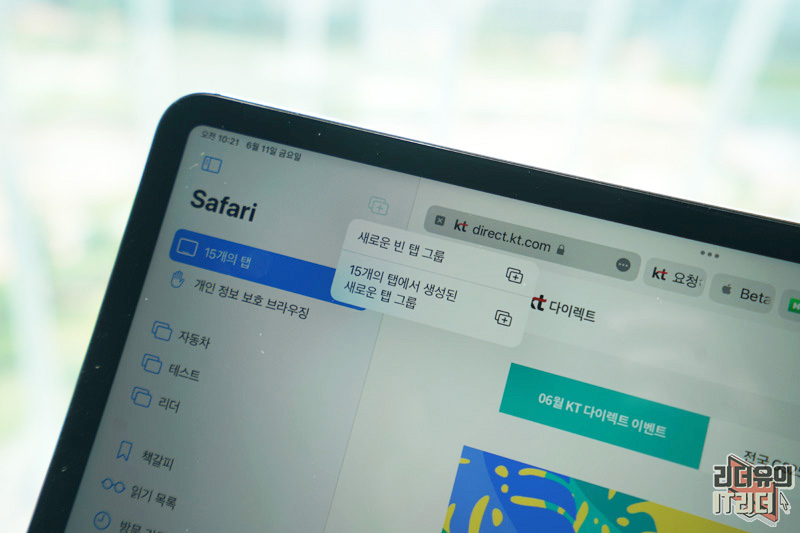추가적인 사파리창을 띄워 웹서핑을 할 수 있습니다. 탭 그룹을 건드리지 않고 다양하게 사파리 창을 띄워 사용할 수 있는 매력적인 기능입니다.