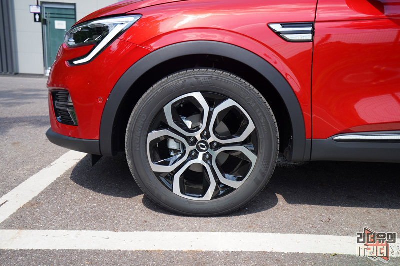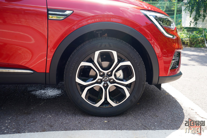 2022년형 르노삼성 XM3 18인치 휠입니다. 꽃모양의 투톤 알로이휠 디자인이라 부드러운 르노삼성 XM3와 잘 어울리고 소닉 레드 컬러를 귀엽게 표현해주고 있습니다. 요즘 휠들이 샤프한 느낌을 많이 강조하고 있지만 르노삼성 XM3 휠은 귀여운 휠 디자인이 인상적입니다.