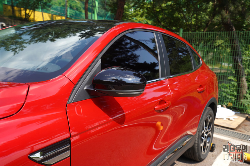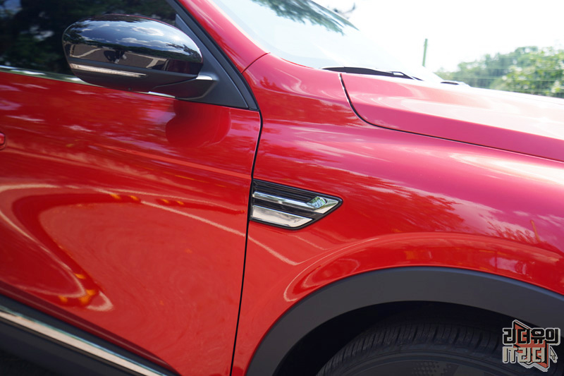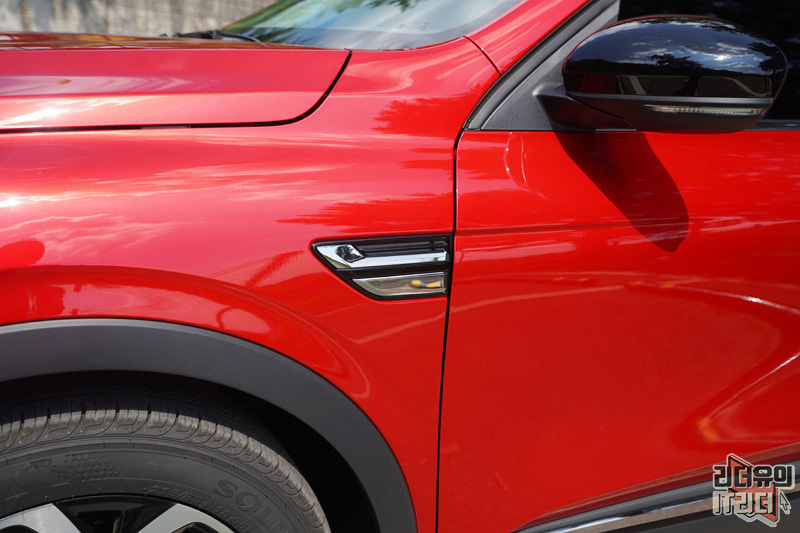 사이드미러 컬러도 블랙으로 처리했습니다. 그리고 글라스 영역에도 블랙으로 처리해 소닉 레드 컬러를 더욱 돋보이게 만들어주는 디자인 포인트 입니다.