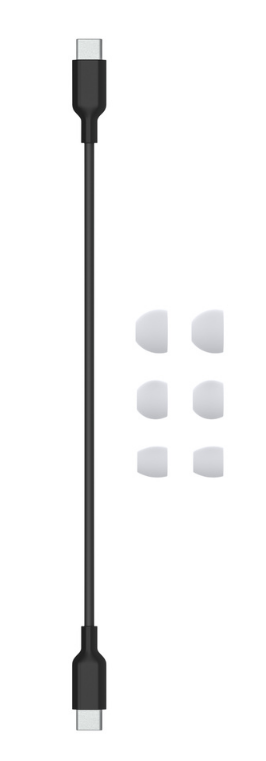 비츠 스튜디오 버즈 구성품은 USB-C to USB-C 충전 케이블과 3가지 사이즈의 이어팁이 제공됩니다.