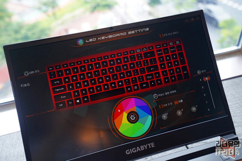 그리고 기가바이트 게이밍 노트북 답게 RGB 키보드로 15가지 컬러 선택을 할 수 있다는 것입니다. 게이밍 노트북은 화려한 노트북 환경도 중요하게 여겨지고 있는데 이런 게이머들의 니즈도 충분히 반영하고 있습니다.