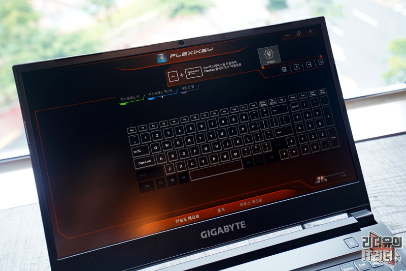 키보드 매크로 시스템도 지원합니다. 게임에서 자주 쓰는 키들을 묶어서 빠르게 컨트롤 할 수 있게 도와주는 것입니다. 기가바이트는 단순히 성능이 좋은 노트북을 게이밍 노트북이라 하지 않고 그에 맞게 준비된 옵션들을 제공하고 있습니다.