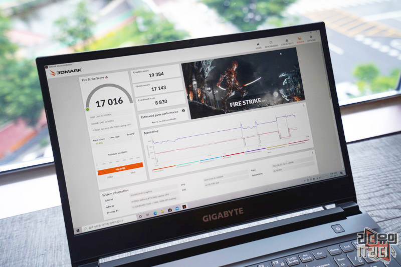 그래픽 점수를 확인할 수 있는 기가바이트 G5 KC i5 3DMARK 점수는 17,016점이 나왔습니다. NVIDIA® GeForce RTX™ 3060 그래픽 성능이 워낙 좋아서 몇년간은 그래픽 걱정 없이 사용할 수 있는 노트북이 아닐까 합니다. 컴퓨터는 누구나 빠른 속도를 원합니다. 그런 가치에서 충분히 만족할 수 있을 것입니다.