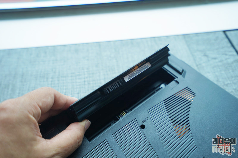 그럼 배터리가 분리형이면 뭐가 좋을까요? 추가 배터리를 구입해 교체해 가면서 사용할 수 있기 때문에 장시간 외부에서도 충전 걱정없이 사용할 수 있습니다. 그리고 모든 배터리는 소모품입니다. 시간이 지나면 수명이 다하게 되는데요. 다른 노트북은 하판을 뜯어서 교체해야 하는 번거로움이 있지만 레노버 G5 KC i5는 가볍게 배터리 교체를 할 수 있으니 서비스센터의 도움이 필요치 않습니다.