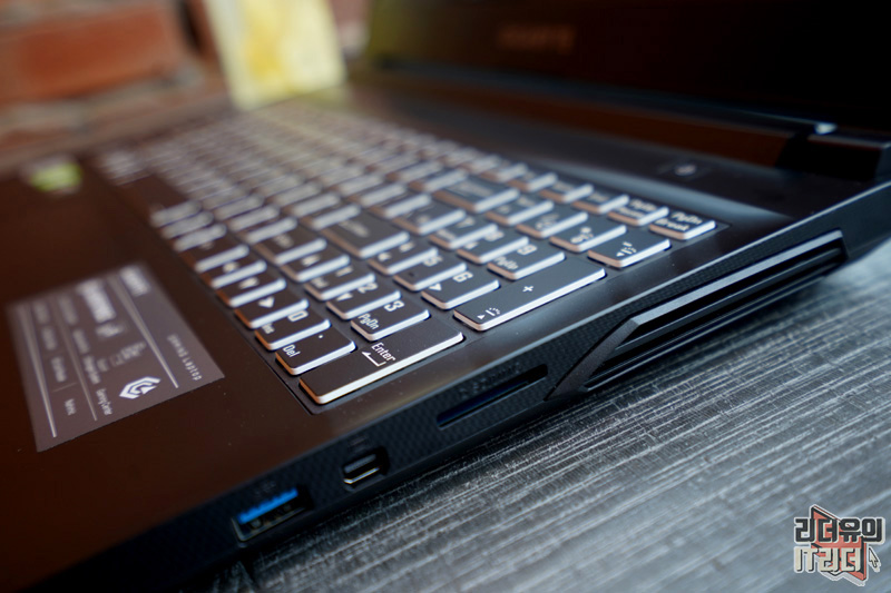 기가바이트 G5 KC i5는 풀사이즈 키보드에 숫자키를 배치해 일반적인 데스크탑처럼 편안한 작업을 할 수 있습니다. 그리고 키감도 상당히 부드럽고 눌리는 느낌도 좋습니다.