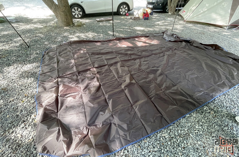방수포 (그라운드 시트)를 넓게 펼쳤습니다.