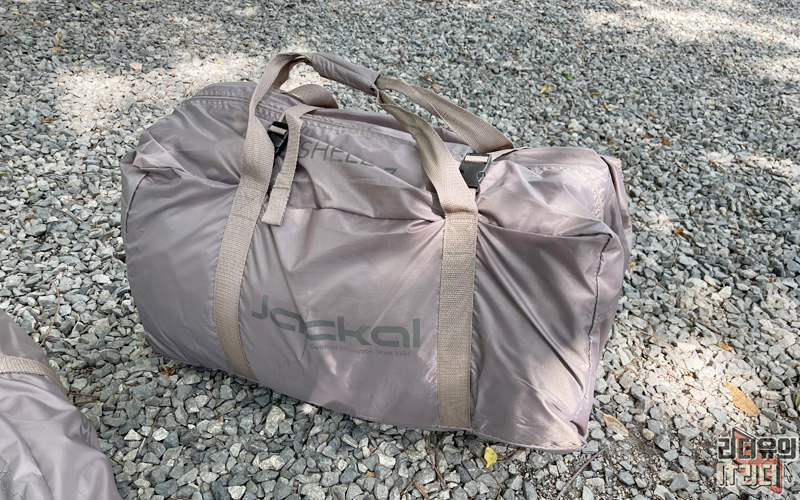 쟈칼 쉘3 (SHELL 3) 텐트 가방입니다. 가방이 넉넉하게 되어 있죠. 텐트의 경우 아무래도 처음과 다르게 설치 후 접게 되면 부피가 커지게 되는데 그런 부분까지 고려해서 준비된 가방 사이즈 입니다.