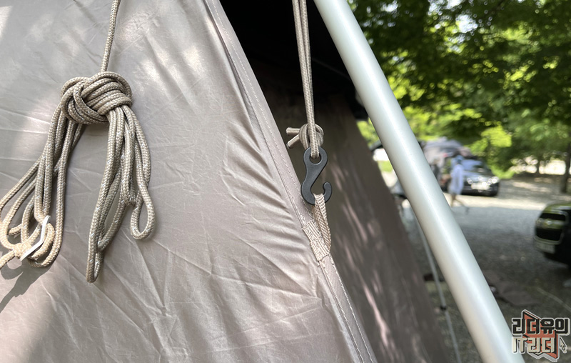 앞에 나무가 있어 텐트를 옆으로 쳤는데 옆으로 출구를 내는 것도 괜찮았습니다. 동선이 짧은게 매력적입니다.