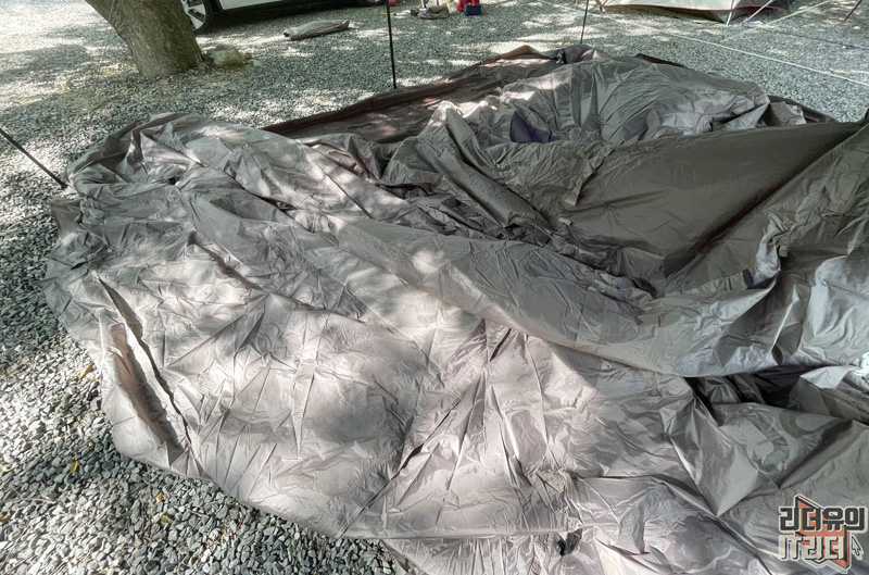 방수포 (그라운드 시트)를 넓게 펼쳤습니다.