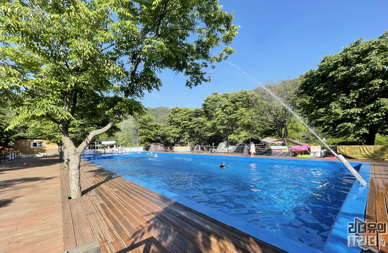 그리고 그 앞에는 이렇게 넓직한 수영장이 있습니다. 아이들이 정말 좋아할 공간이죠~