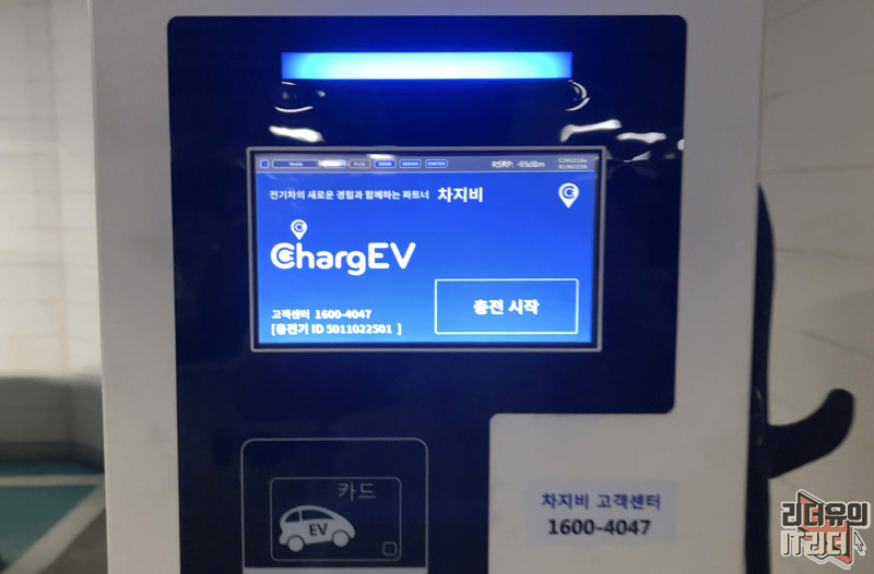 전기차 충전기 가서 충전 시작을 눌러 줍니다.