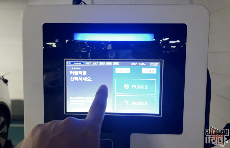 모든 준비가 완료되면 해당 커플러 단자가 열리게 됩니다. 저는 플러그2를 선택했으니 플러그2 커버가 열린 것입니다.