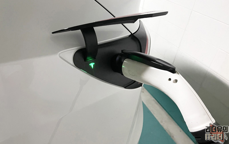 테슬라 충전 램프도 색상이 깜빡 거리면서 충전 중임을 보여주고 있습니다. 시각적인 효과로 확실한 차이를 느낄 수 있습니다.
