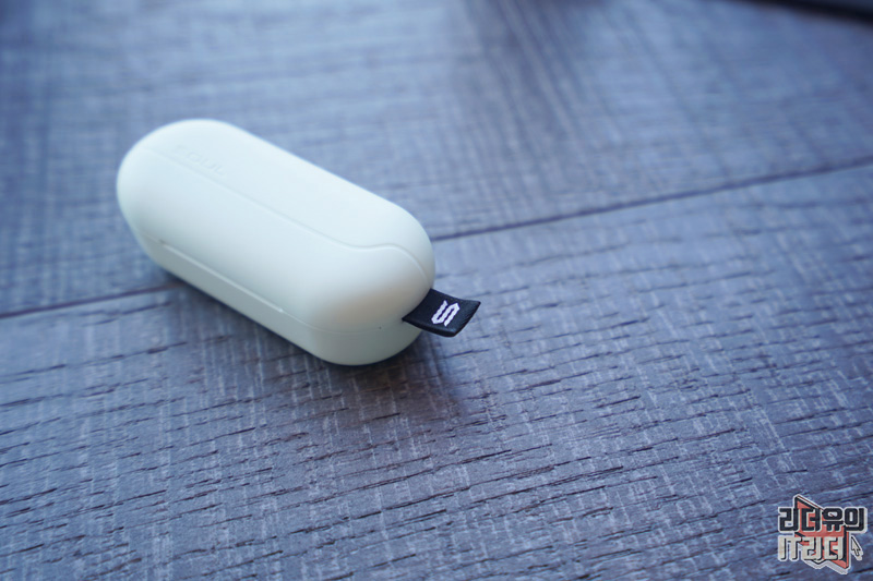 소울 SYNC ANC 충전 케이스는 독특하게 천으로 된 스트랩 고리가 있습니다. SOUL 브랜드를 상징하는 S로고가 들어가 있는데요. 기본 제공되는 소울 카라비너를 여기다 연결해서 사용할 수 있습니다.