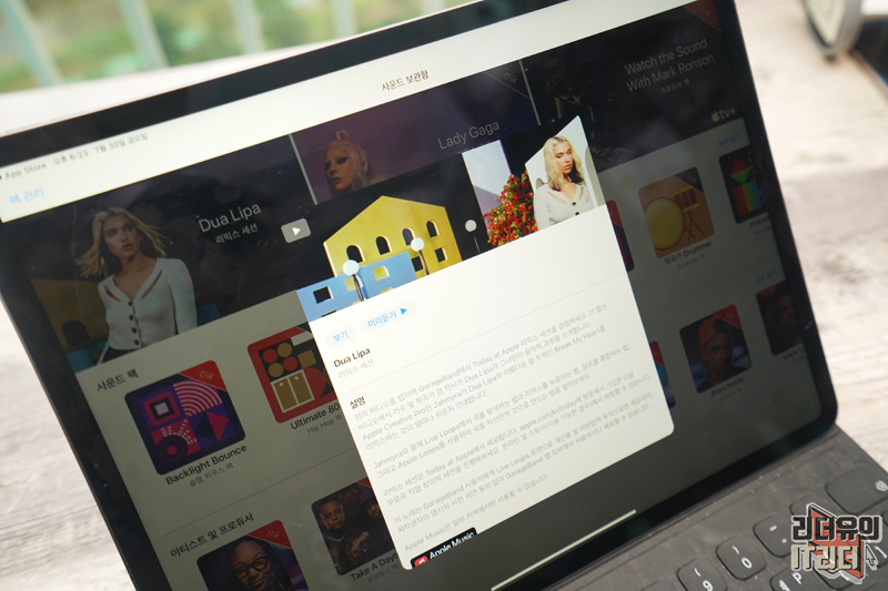 Dua Lipa (두아 리파)는 "Break My Heart", Lady Gaga(레이디가가)는 "Free Woman" 히트곡을 담았고 이 곡들의 탄생 비화와 Apple Retail Creative Pro가 단계별로 차근차근 전수하는 가라지밴드 리믹스 강의가 포함되어 있습니다.