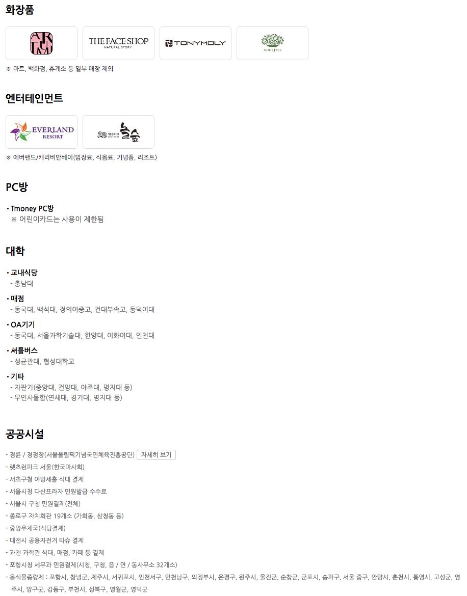 티머니 카드 사용처